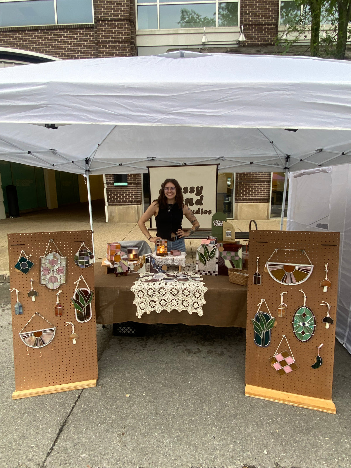 Hi I’m Olivia, the mess behind the mind! I started working with glass in early 2024 after graduating design school and not wanting to lose creativity! With a love for creating, antiques, and design I found my way to stained glass and said f*ck it, let’s try it out! After trial & error, I started Messy Mind Studios in June of 2024 with local markets & social media!